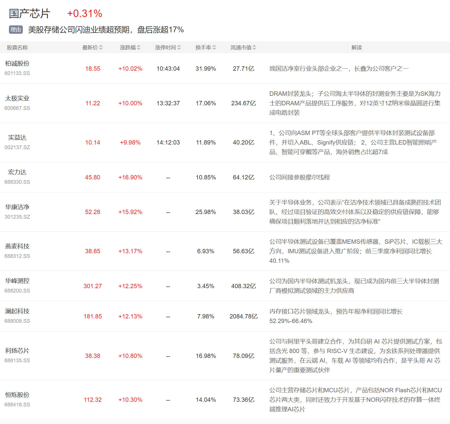 国产芯片概念今日继续活跃,柏诚股份、太极实业、实益达等多股涨停。