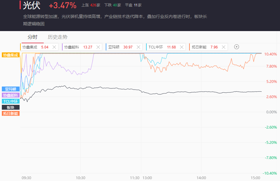 光伏板块今日早盘迎来集体高开后大反弹。