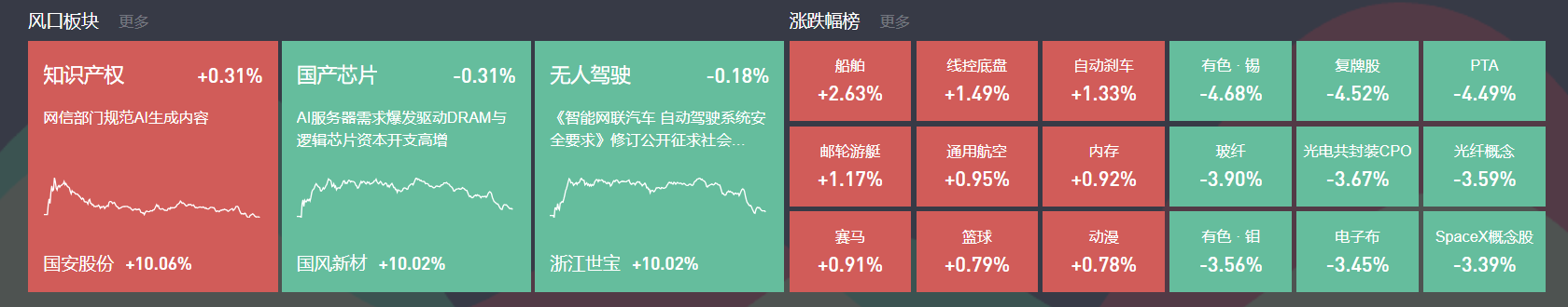 除上述热点外,航天、机器人等局部活跃;跌幅方面,CPO、光伏等跌幅居前。