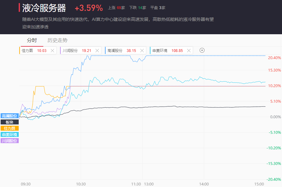 液冷服务器板块全天单边走强,最终收涨3.59%。