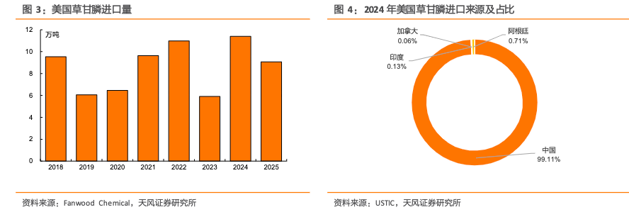 2)美国国内草甘膦供应能力有限,对我国进口依赖度仍较高