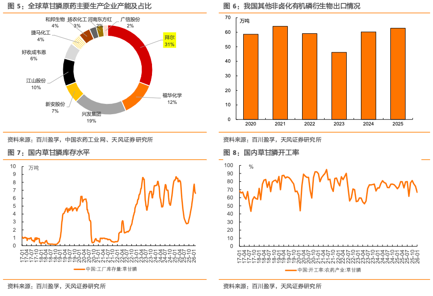 天风证券研报指出,2月18日,特朗普签署了一份援引《国防生产法》的行政命令,将元素磷和草甘膦类除草剂列为国防关键物资。美国国内草甘膦供应能力有限,对我国进口依赖度仍较高,当前国内草甘膦价格处于较低水平。