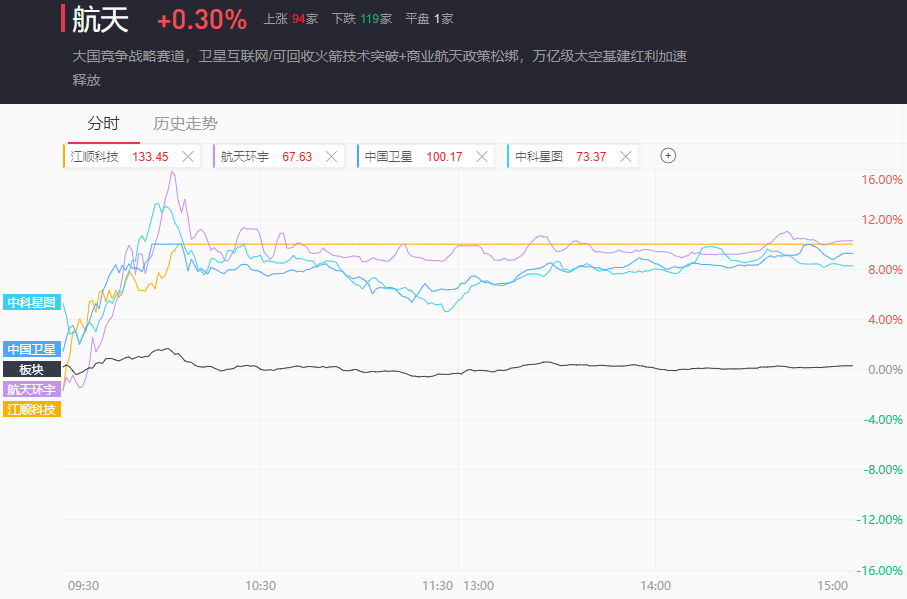 今日航天板块也因此迎来局部走强(以下排除了强军工属性的)。