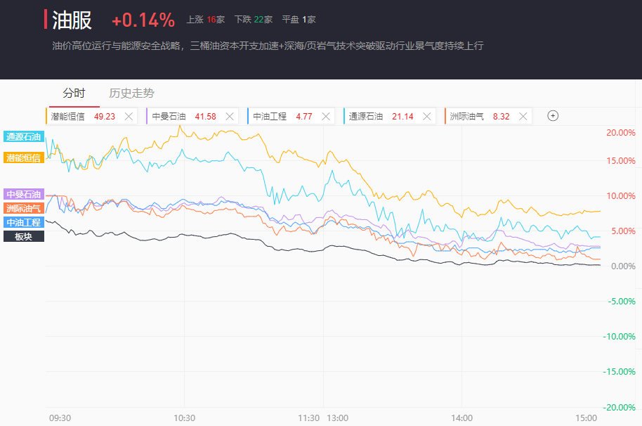 油气板块今日全天大幅高开低走。