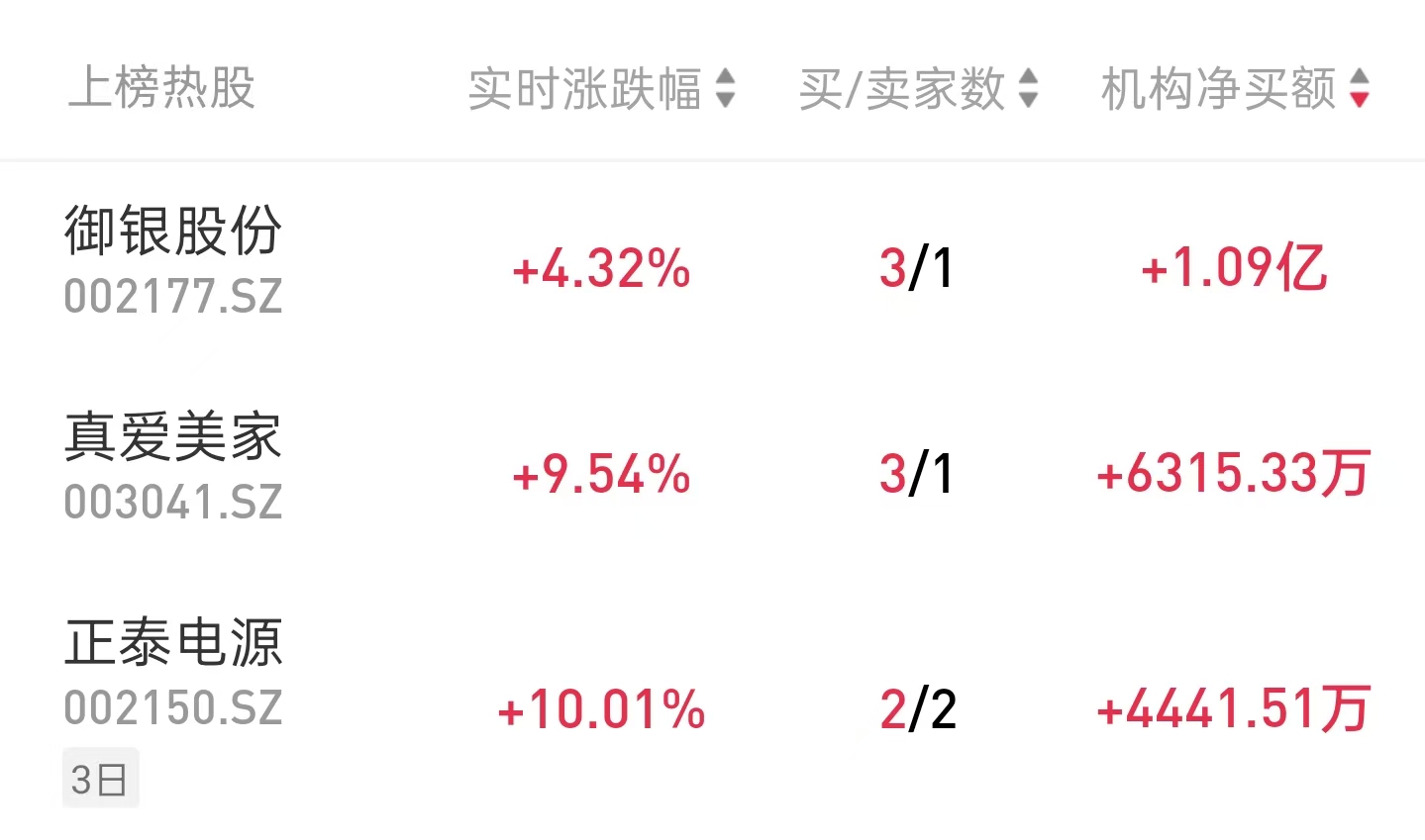 龙虎榜机构热股
