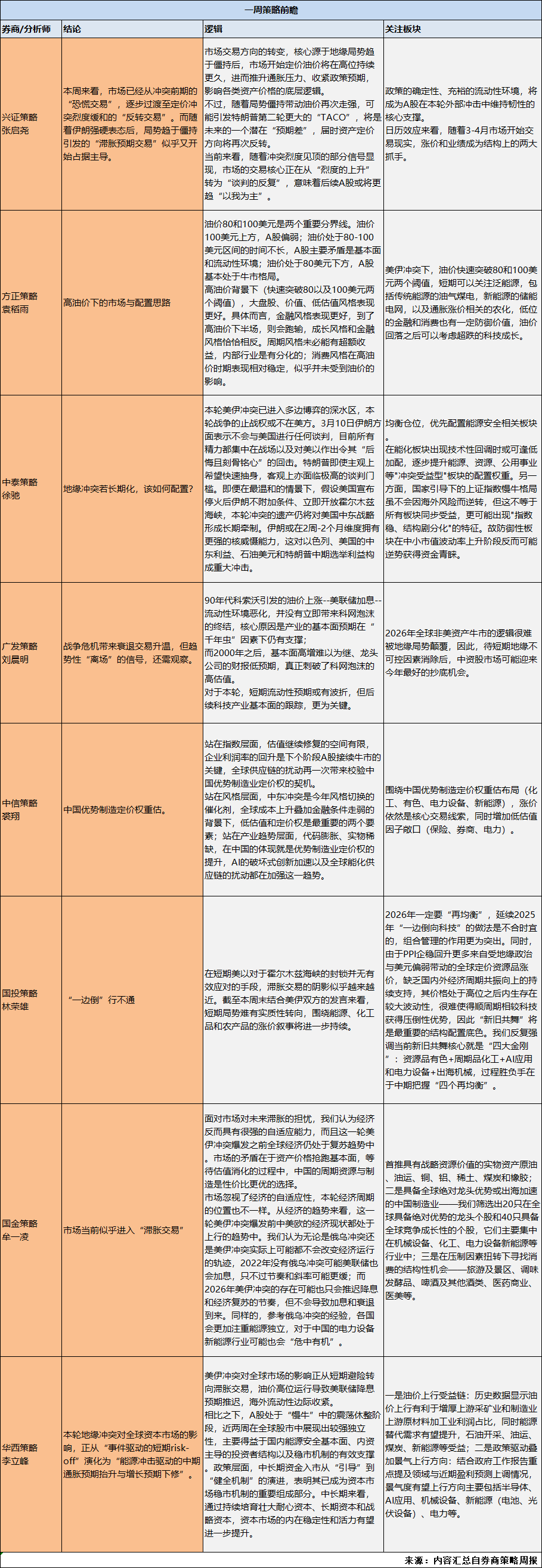 本周券商策略分析师聊到的焦点在于“滞胀预期交易”似乎开始占据主导。