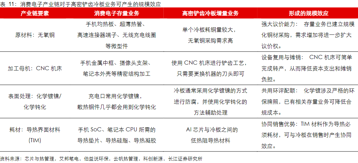 消费电子公司在产业的巨量规模与快速迭代中锤炼出的各项能力与优势,可充分满足切入液冷核心部件高密铲齿冷板市场的要求。