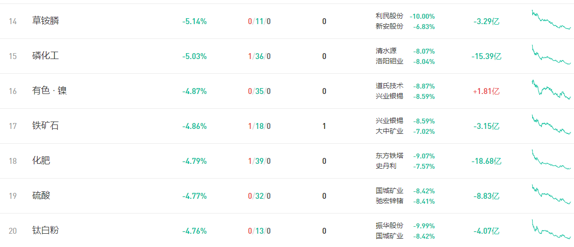但另一边,利民股份、新金路、三房巷、同德化工、兴发集团、川金诺、赤天化、金正大、三友化工、云图控股、六国化工或跌停或重挫。