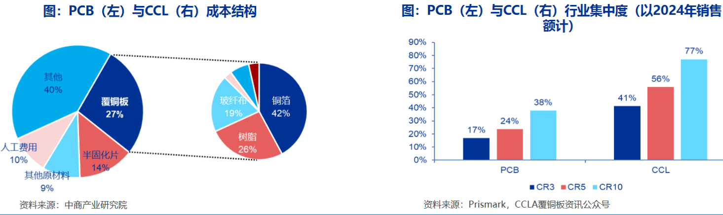 从历史行情来看,相比于PCB,CCL受益于行业集中度高,且标准化程度高,当铜箔、玻纤布等上游原材料涨价时,CCL厂商能够较为顺畅地向下游传导,通过涨价实现毛利增厚。