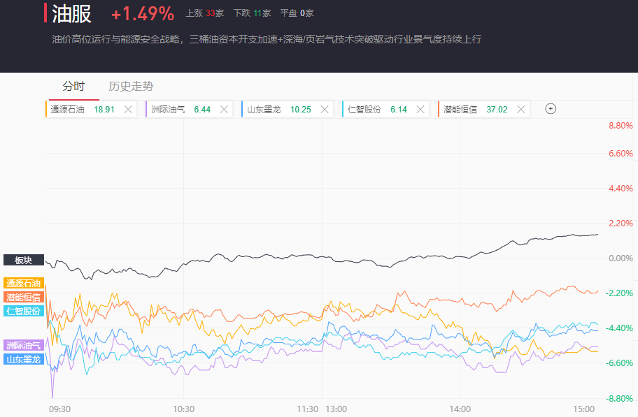 截至收盘,石油化工、油服、天然气分别收涨1.92%、1.49%、1.89%。