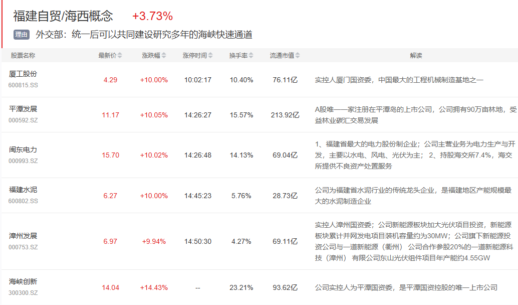 尾盘福建自贸区板块异动,平潭发展、闽东电力、漳州发展、福建水泥集体上板。