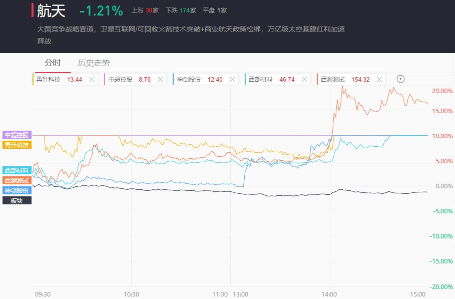 商业航天、SpaceX概念盘中反复活跃,再升科技2连板,中超控股、神剑股份、西部材料、西测测试(20CM炸)涨停。顶固集创、天银机电、长盈通、通宇通讯、航天发展、超捷股份、信维通信等午后均大幅拉升;