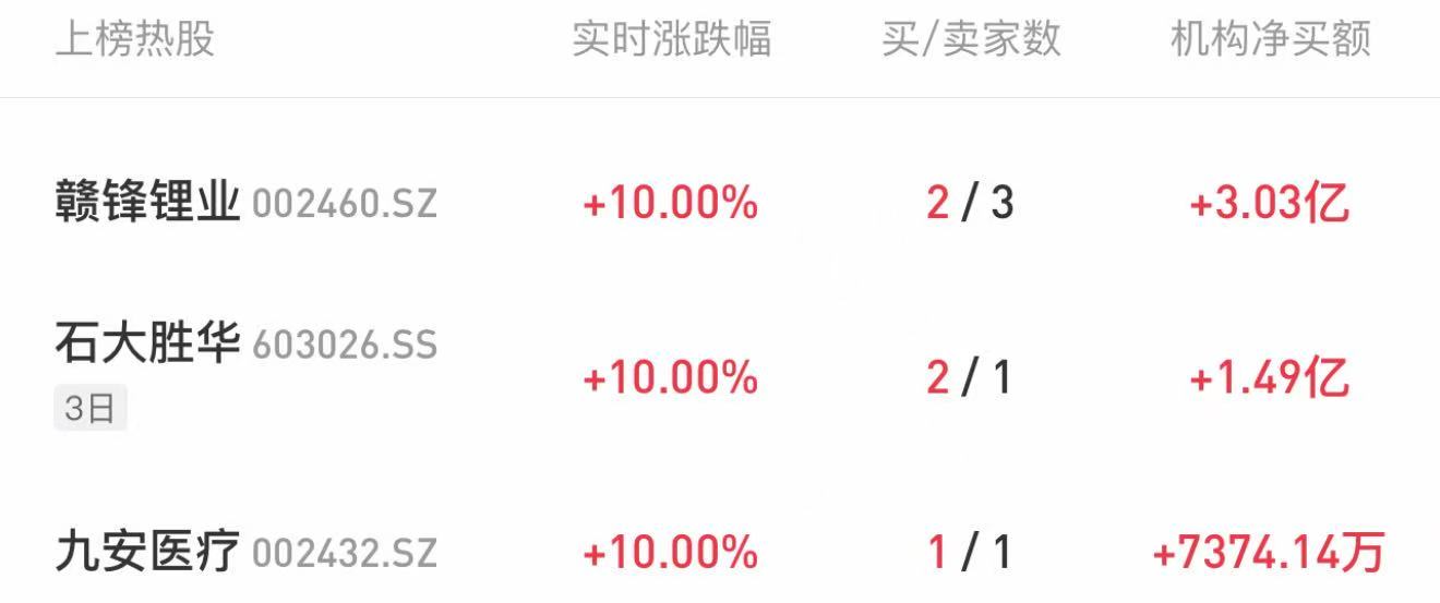 今日龙虎榜显示,3家机构净买入3.03亿。