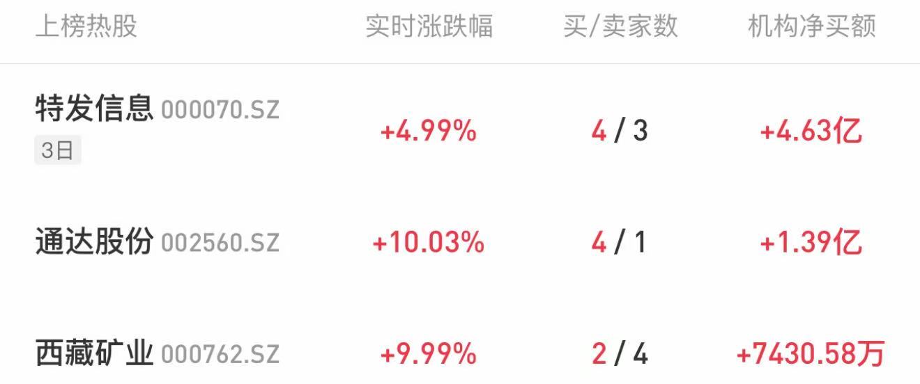 龙虎榜机构热股