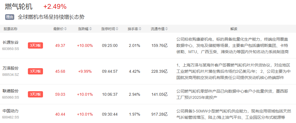 燃气轮机板块今日表现加强,联德股份、万泽科技双双涨停,人气股杰瑞股份盘中一度大涨逾7%。