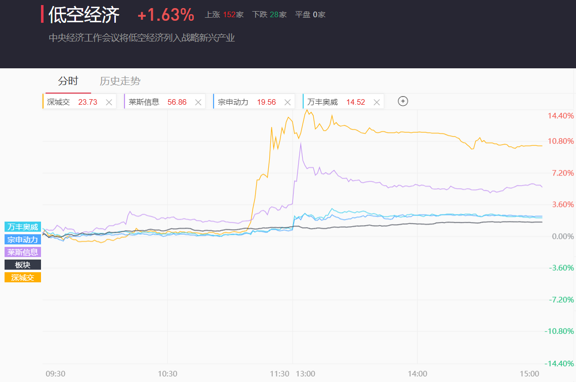 低空经济板块全天小幅震荡走强,最终收涨1.63%。