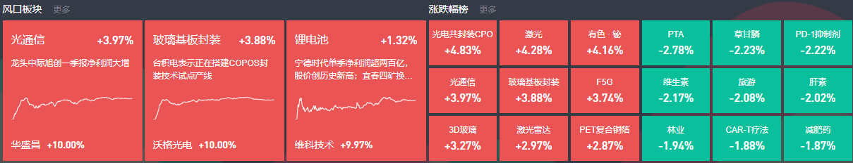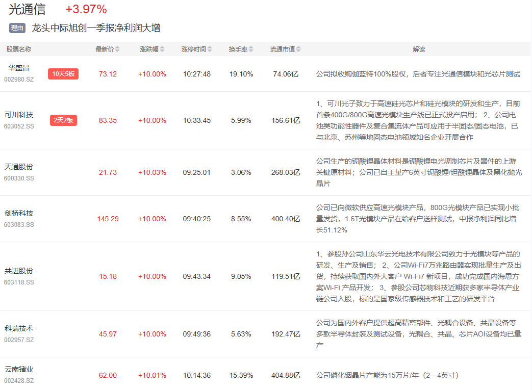 1、光通信:龙头集体大涨,中际旭创一季报净利润同比暴增262%