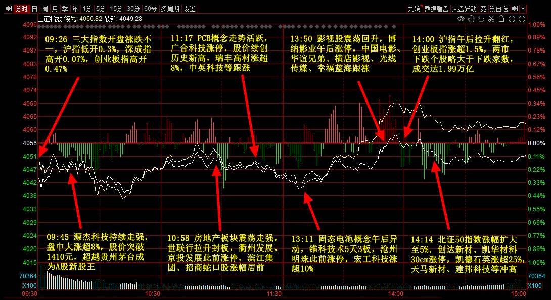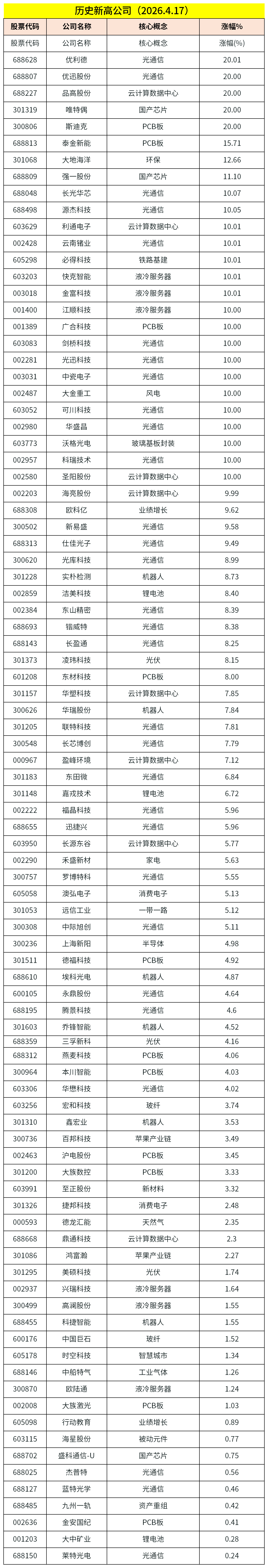 当日沪指全天窄幅震荡,整体表现偏弱;创业板指走势较强,继续刷新近11年新高;北证50指数大涨近5%,市场赚钱效应集中于科技成长方向。CPO等算力硬件股持续走强,源杰科技大涨逾10%,股价超越贵州茅台,登顶A股新股王;PCB概念延续强势,广合科技涨停创历史新高;液冷服务器概念持续活跃,圣阳股份实现7连板。下跌方面,旅游板块调整明显,桂林旅游、丽江股份跌幅均超5%。个股跌多涨少,沪深京三市近3000股飘绿,今日成交2.45万亿。