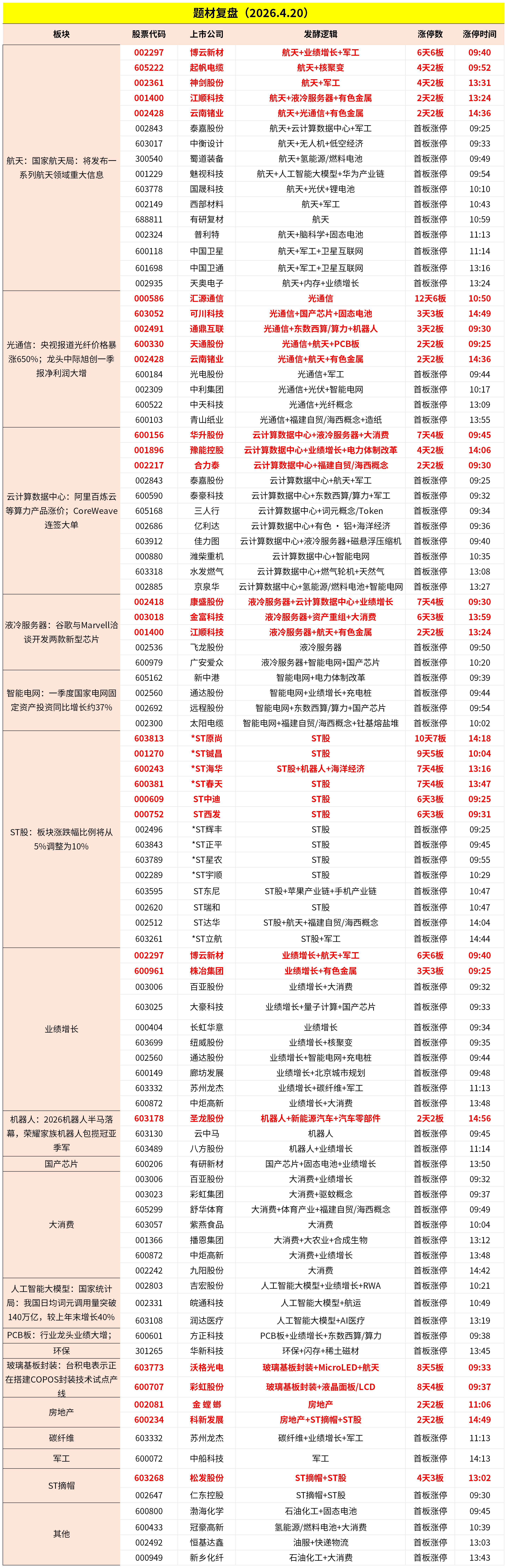 板块概念方面,商业航天、光纤、液冷服务器、数据中心等板块涨幅居前,教育、盐湖提锂、电池、房地产等板块下挫。 两市共3197只个股上涨,90只个股涨停,1822只个股下跌,15只个股跌停,15只股票炸板,炸板率20%。