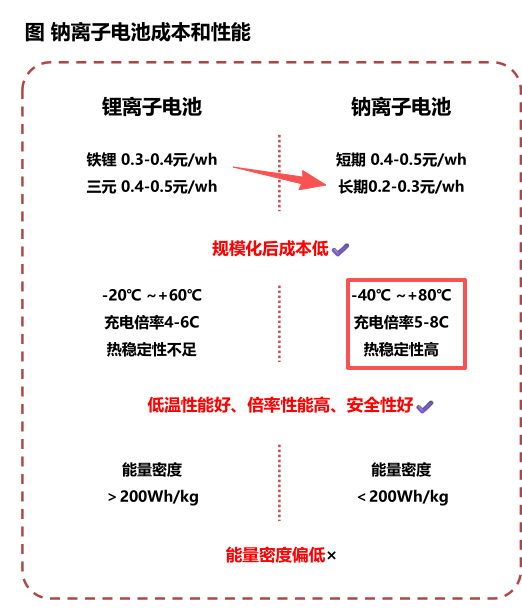1)钠电池:具备成本及低温等优势,成为锂电池的有效补充