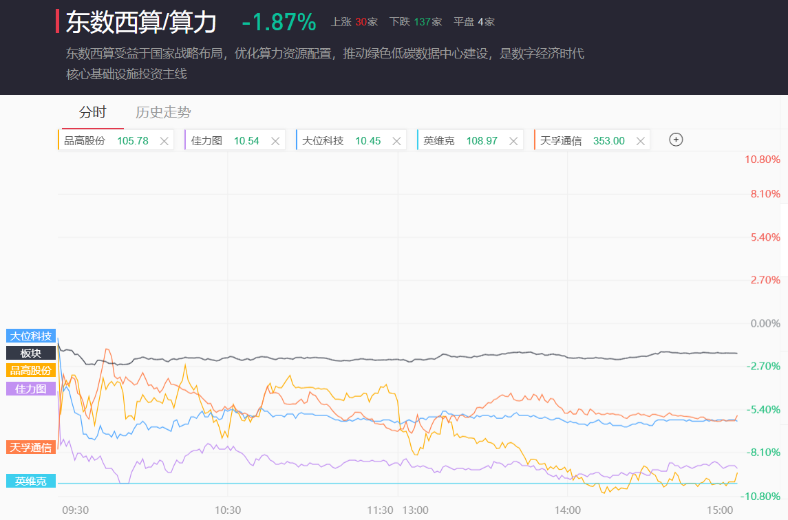 算力板块早盘一度跌超2.5%,虽然局部个股此后有反弹修复,但最终依旧收跌1.87%。