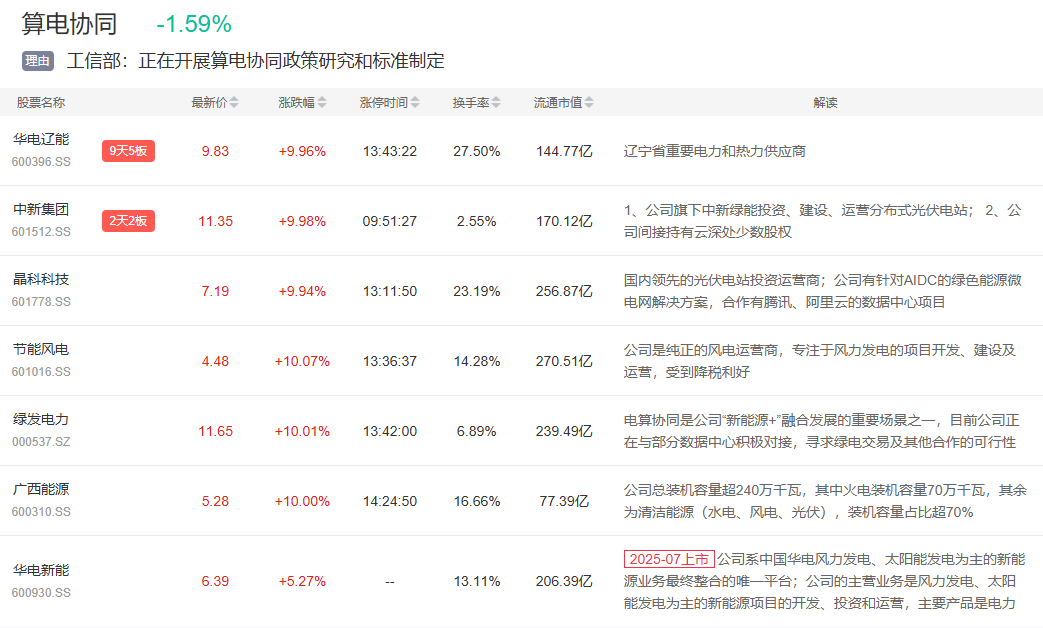 4、绿电:算电协同政策密集落地,板块午盘拉升
