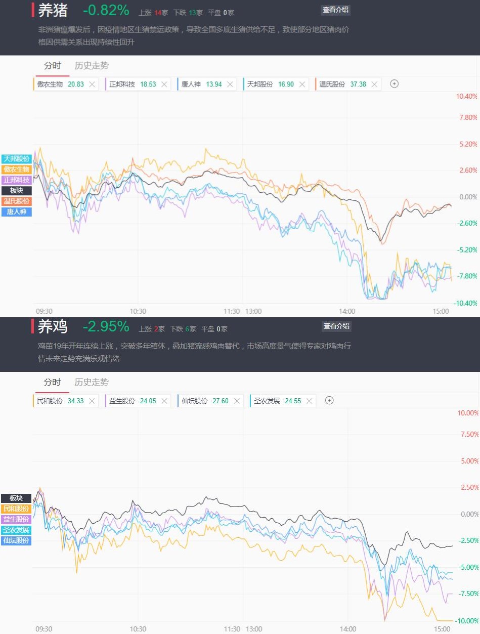 在人造肉继续统治今日行情之际,午后猪肉、鸡肉板块开始放弃抵抗全线下挫。