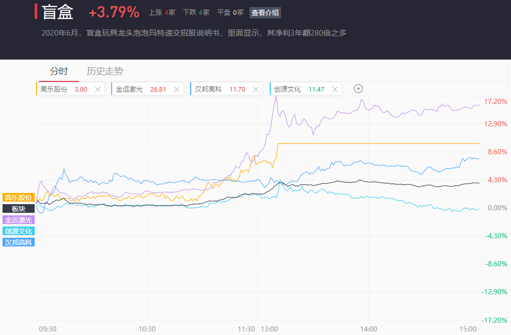盲盒板块整体上涨3.79%。