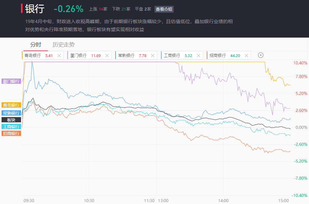 最终银行板块整体收跌0.26%。