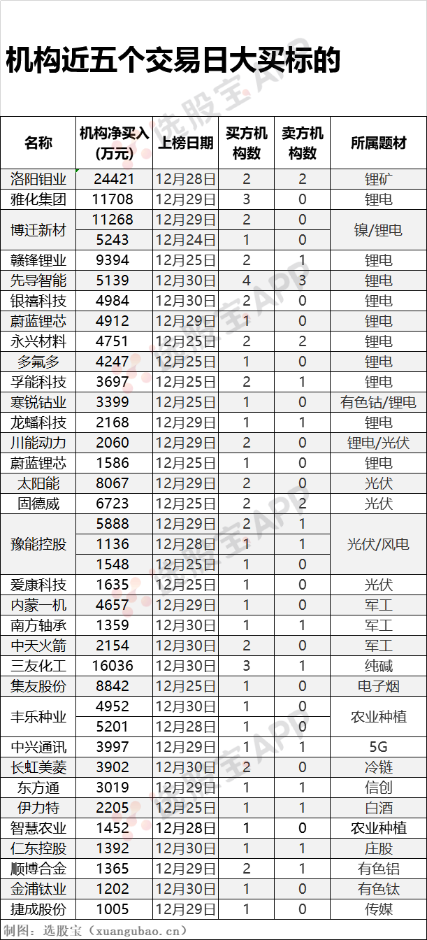 值得一提的是,机构在高位买入多只个股。如豫能控股,机构分别在25日、28日、29日连续加仓,都属于高位加仓。还有太阳能,机构昨日跌停板上买了8000多万,也是高位加仓。