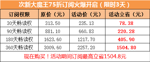 现在给大家送,下一趟列车的入场券,七五折抄底订阅大魔王