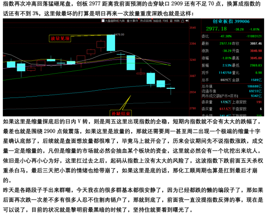 2、指数企稳的标识是极度缩量,相当于前面放量的60%才到底,不到不是底
